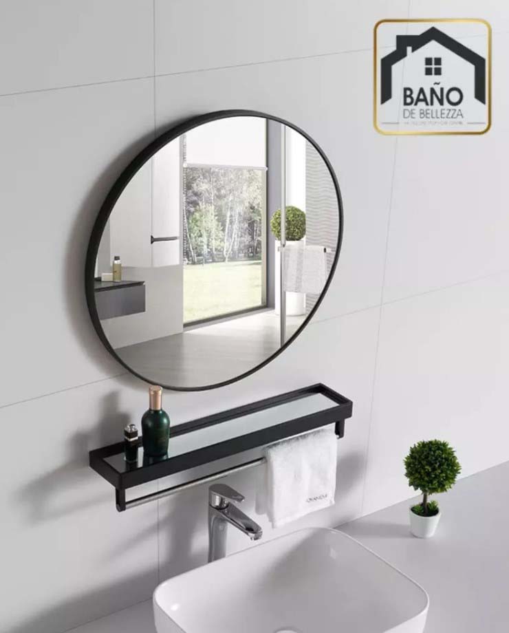 这款镜子也是比较适合放在浴室,圆形的设计,显得浴室更加的时尚+设计感!这个价格也是包括毛巾置物架的。有两个颜色,白色和黑色!